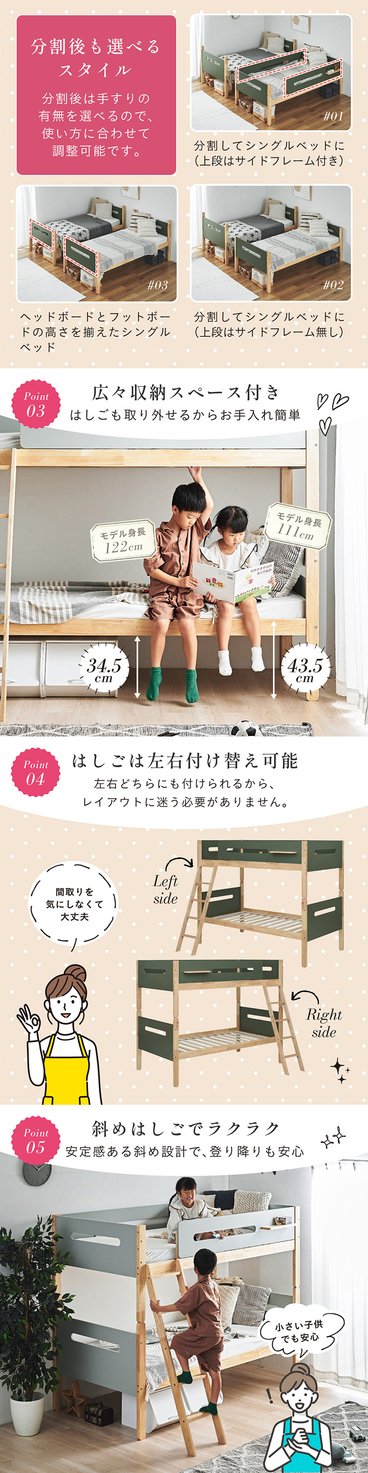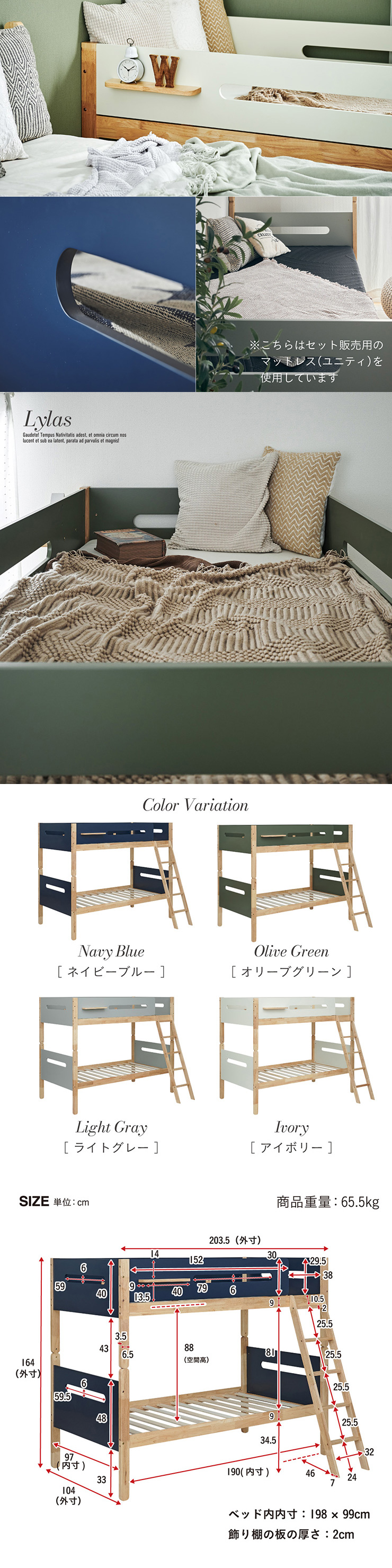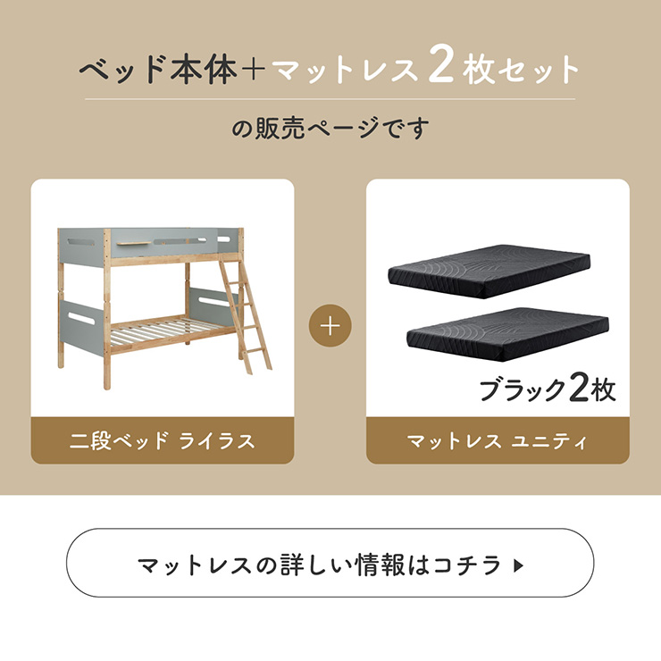二段ベッド 大人用 子供 分離 マットレス付 シングル 硬め おしゃれ シングルベッド すのこ 2枚 BKセット Lylas ライラス + Unity ユニティ 4色対応