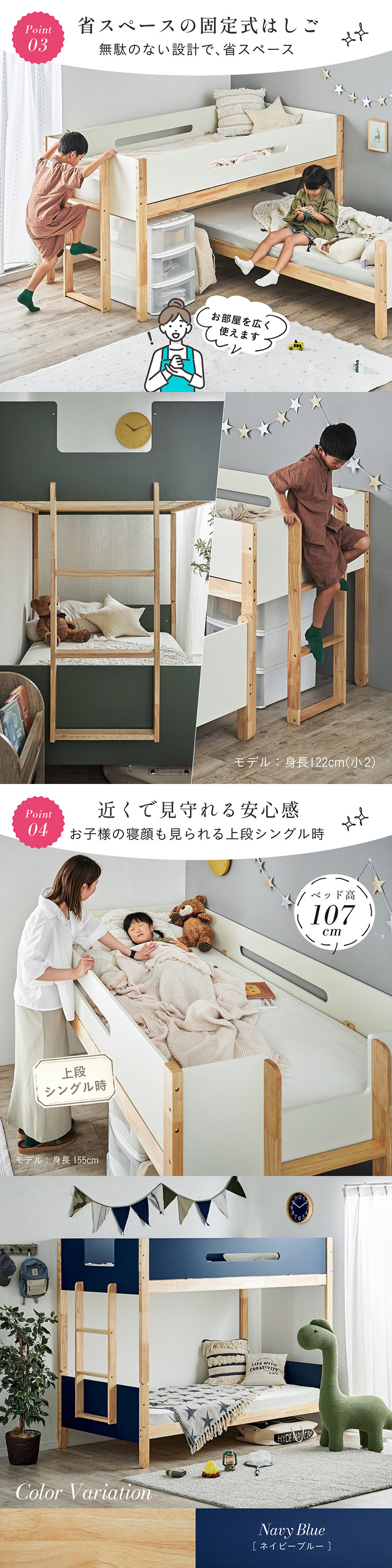 ベッド:ネイビーブルー・ライトグレー・オリーブグリーン・アイボリー