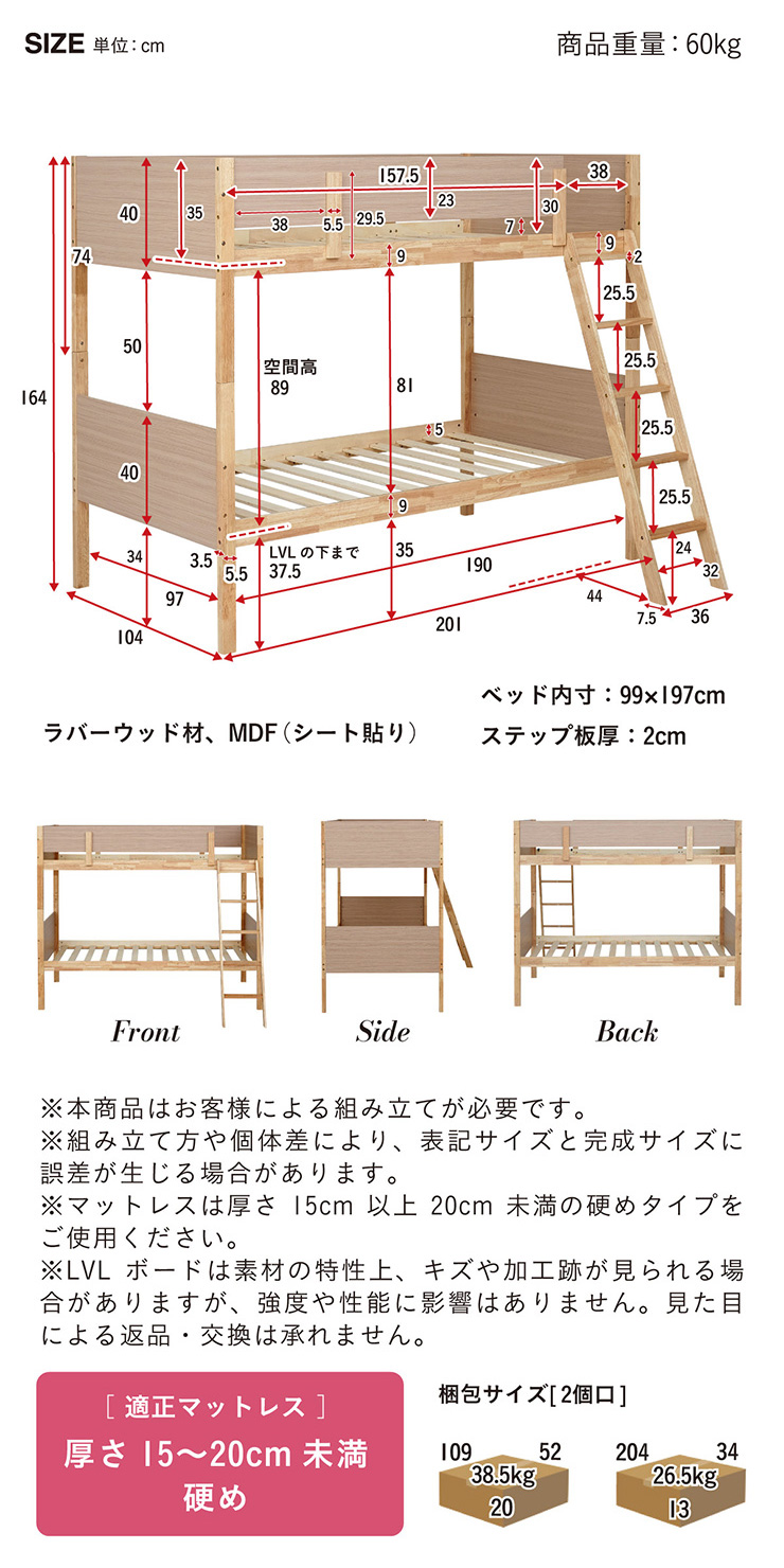ベッド:約W201 x D104 x H164cm(60kg)