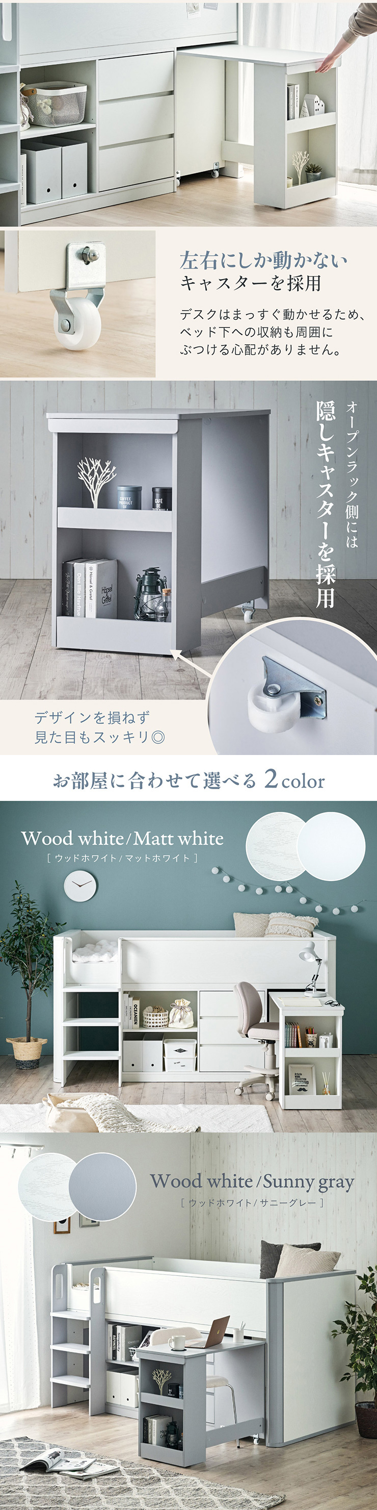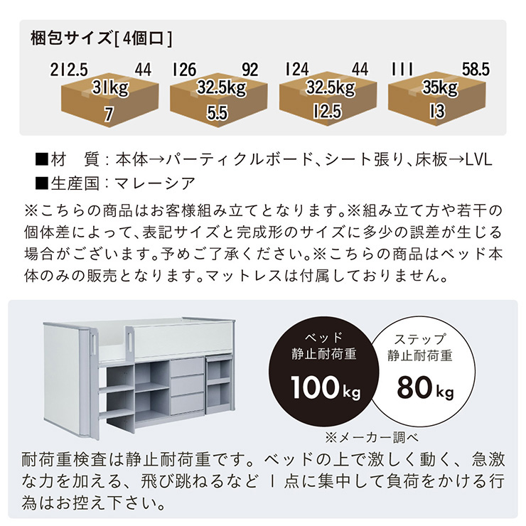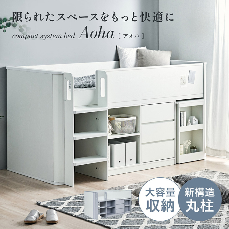 システムベッド 子供 大人用 システムベッドデスク ロータイプ ロフトベッド 階段 机付き シングルベッド 収納 チェスト Aoha アオハ 2色対応
