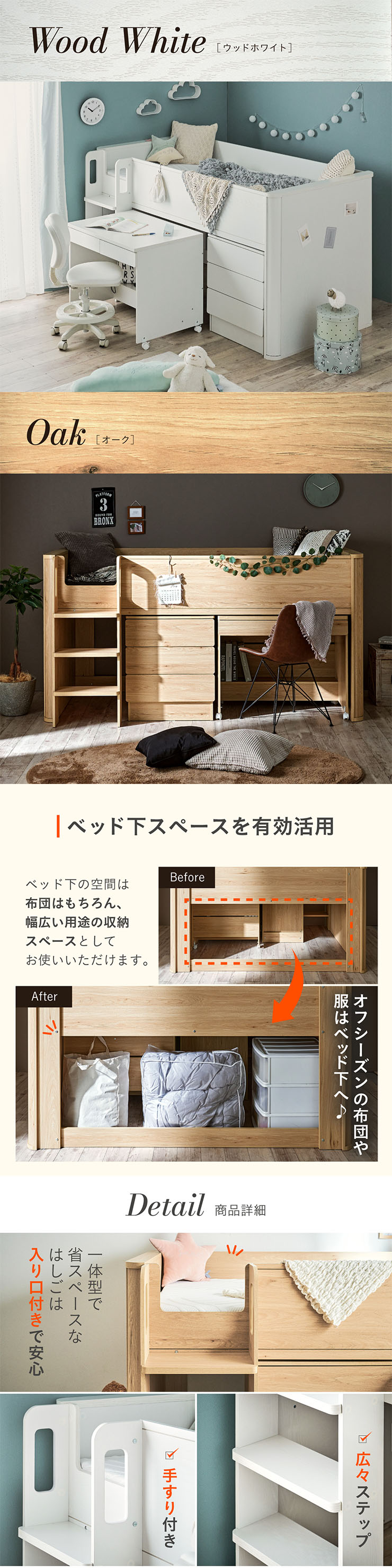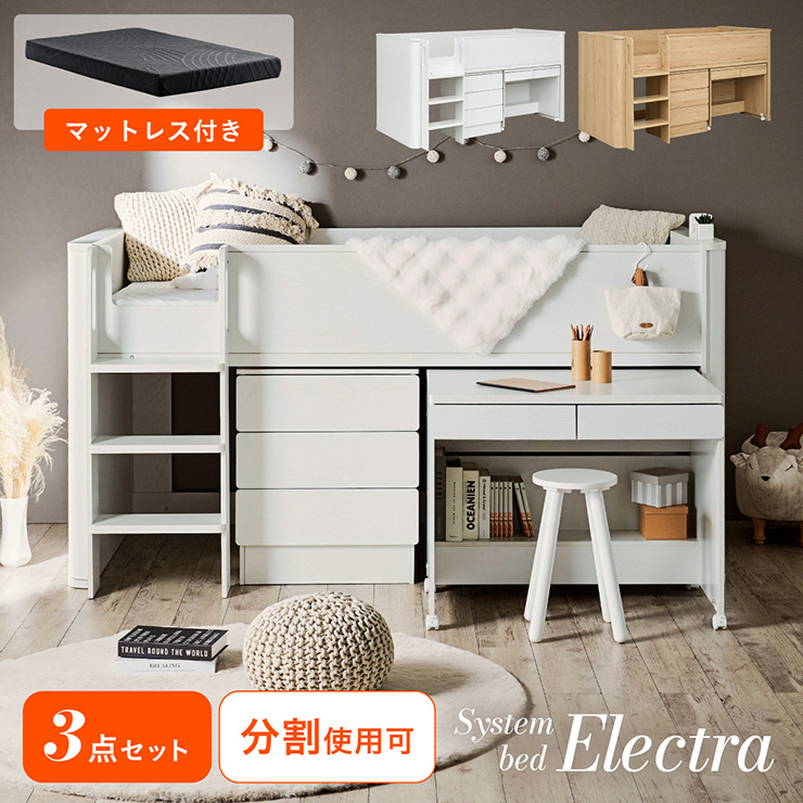 システムベッド 子供 大人用 ロータイプ デスク ロフトベッド 机付き マットレス シングル Electra エレクトラ 2色対応 + Unity ユニティ ブラック