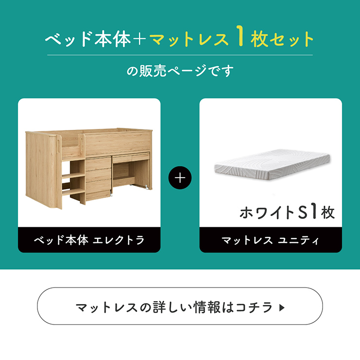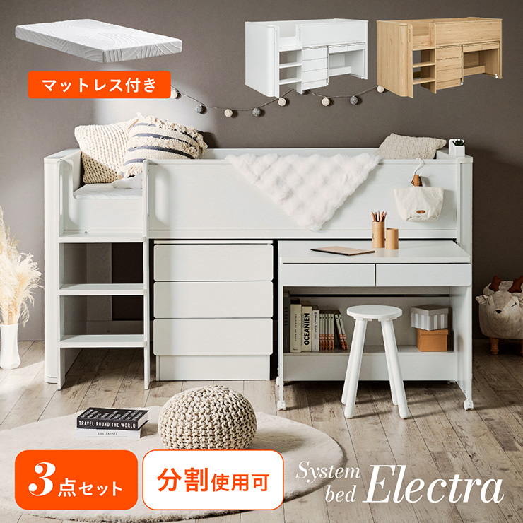 システムベッド 子供 大人用 ロータイプ デスク ロフトベッド 机付き マットレス シングル Electra エレクトラ 2色対応 + Unity ユニティ ホワイト
