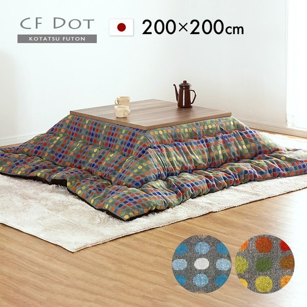 日本製 収納袋付き 薄掛け こたつ布団 こたつ掛け布団 こたつ布団単品 CF DOT(CFドット) 正方形 約200x200cm 2色対応