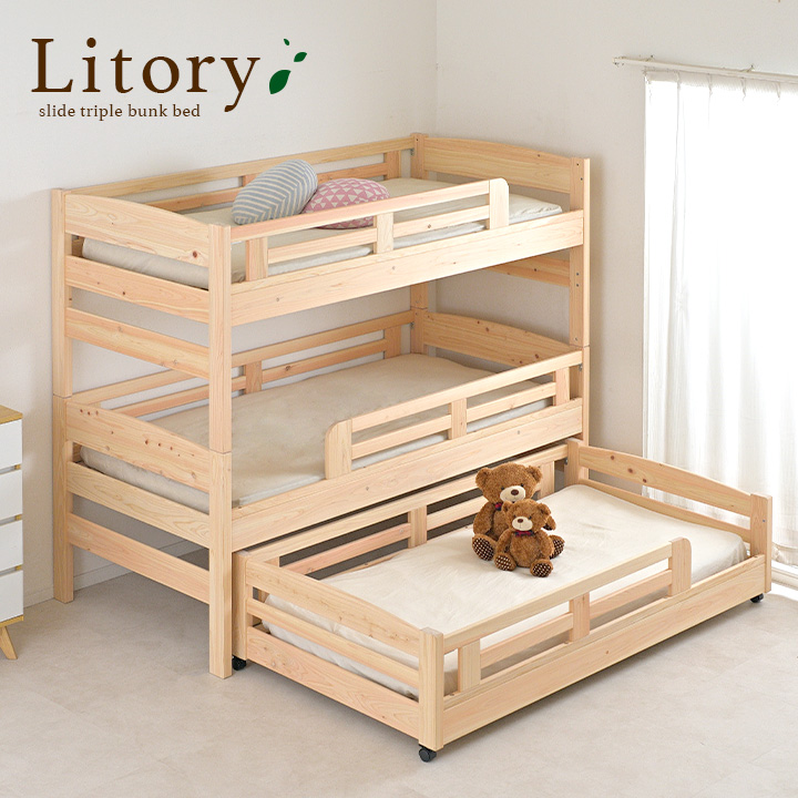 5年保証 国産 ひのき 三段ベッド 3段ベッド 親子ベッド 親子三段ベッド 親子3段ベッド 二段ベッド シングルベッド 檜 日本製 キャスター付き Litory2(リトリー2)