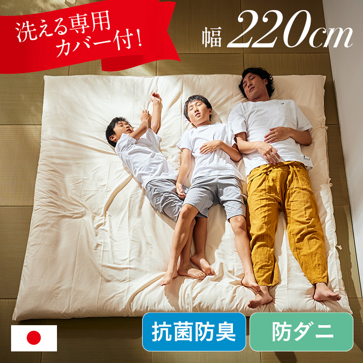 日本製 東洋紡フィルハーモニイ使用 ファミリー 敷き布団 敷布団 3人用 220x200cm 敷布団カバー付き 敷き布団カバー付き 布団 ふとん 家族 子供 大人 2色対応