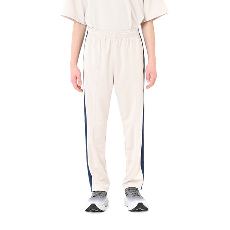 ●吸汗速乾性に優れたNB Dryのダブルニットを使用したトラックパンツです。程よいゆとりとフィット感のストレートシルエットで仕上げました。フロントのピンタック、左腿のNBロゴ刺繍、サイドラインテープがデザインポイントです。