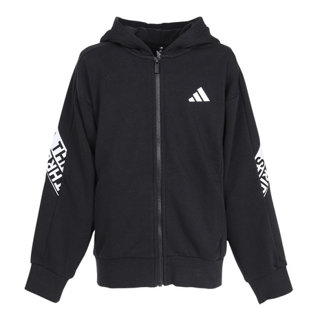 2025年秋冬モデル 2025fwmodel アディダス ADIDAS スーパースポーツゼビオ ゼビオ Super Sports XEBIO スウェット スウェットパーカー Junior ジュニア じゅにあ 子供 JR スポーツアパレル スポーツウェア adiap25fw 部活 クラブ 普段着 パーカー リサイクル素材 黒 ブラック 25apswt 25fwslkids