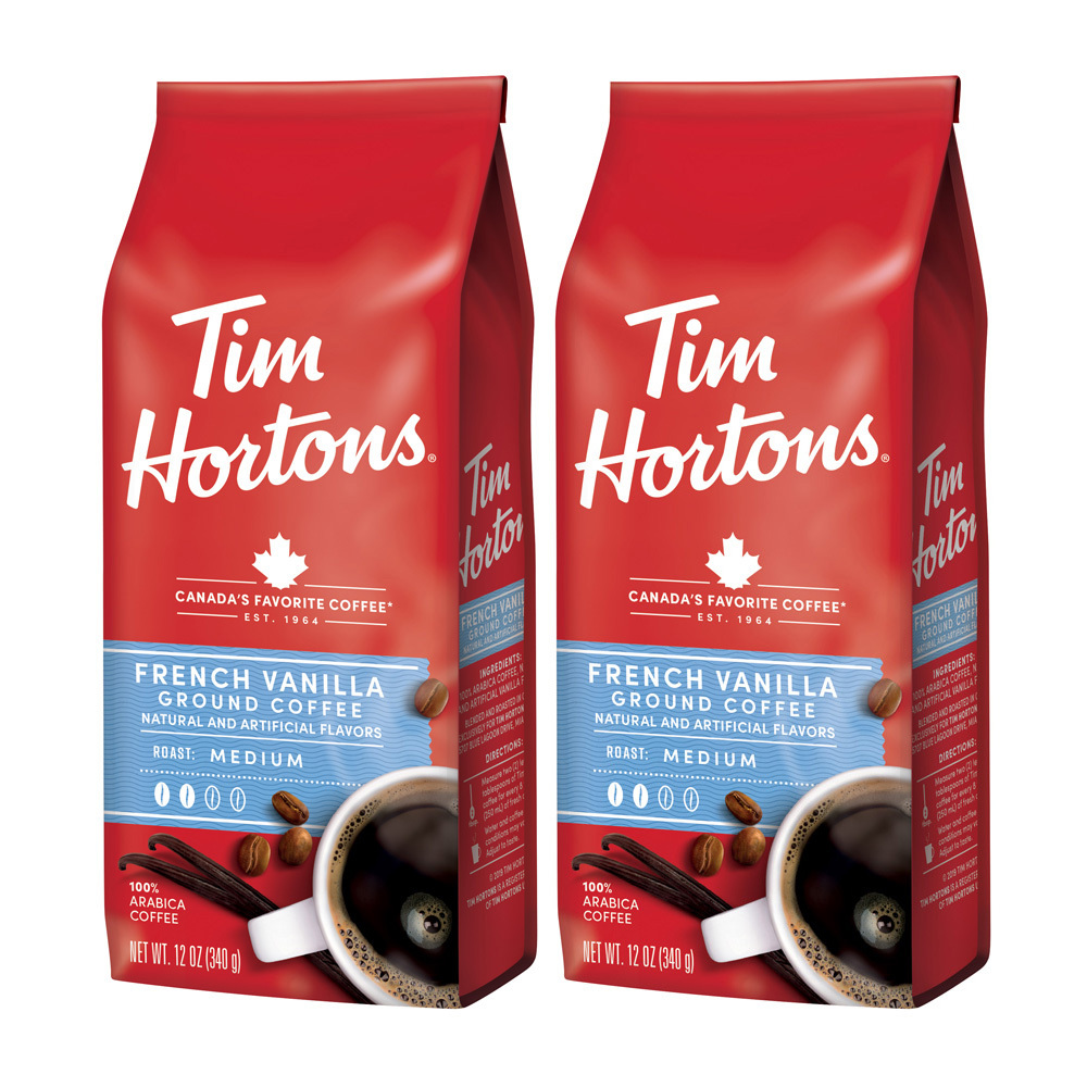 フレンチバニラグラウンドコーヒー、ミディアムロースト340g 2個セット Tim Hortons French Vanilla Ground Coffee, Medium Roast 12 oz