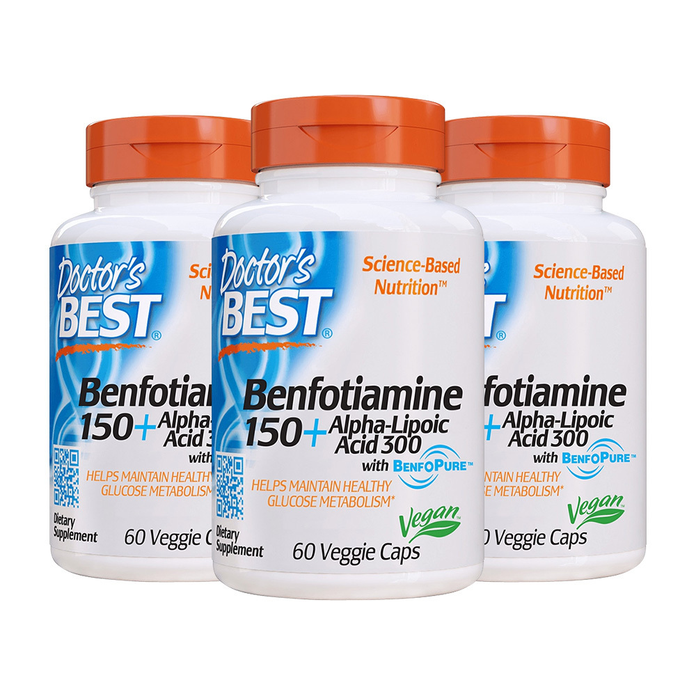 ベンポチアミン150 +アルファリポ酸300、60ベジカプセル 3個セット Benfotiamine 150 + Alpha-Lipoic Acid 300, 60 Veg Capsules