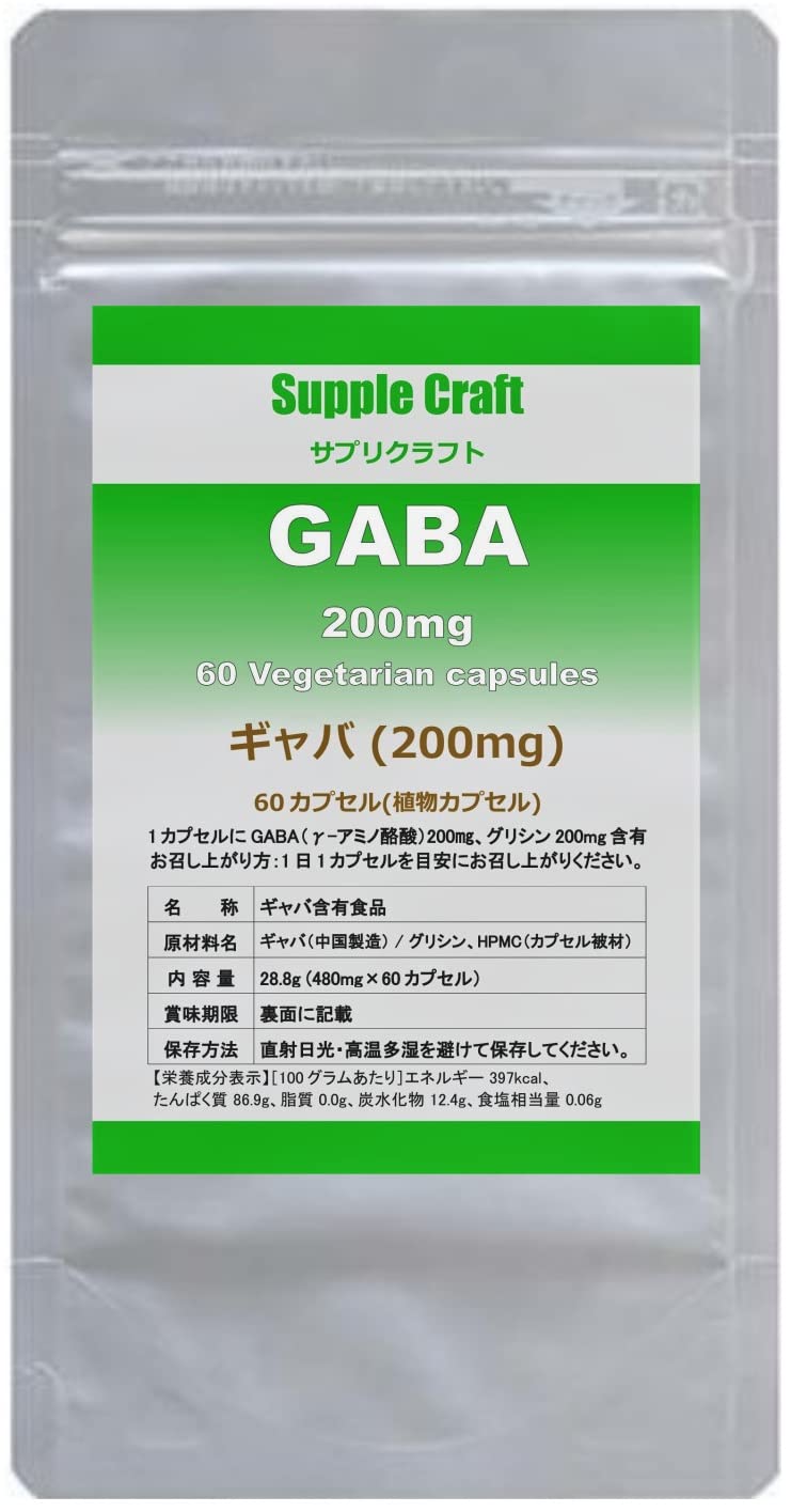 サプリクラフトの「GABA(ギャバ)」は1カプセルでGABA(ギャバ)200mgとグリシン200mgを摂ることができます。