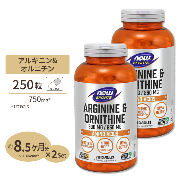 ナウフーズ 【2.5倍!大増量】L-アルギニン & L-オルニチン 500mg 250mg 250粒【約40〜125日分】 2個セット NOW Foods ナウスポーツ