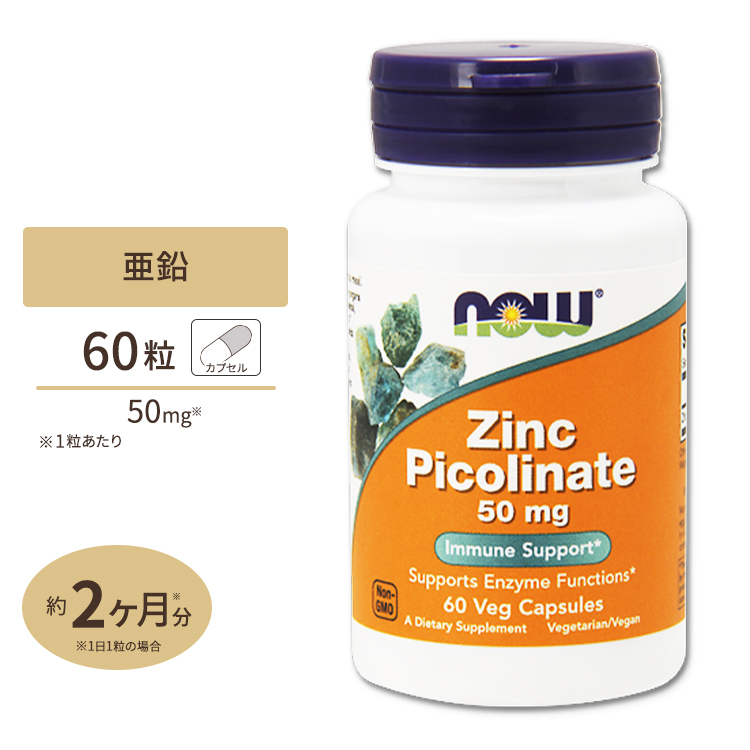 NOW Foods ジンク (ピコリン酸亜鉛) 50mg 60粒 カプセル ナウフーズ Zinc Picolinate 50mg - 60Caps
