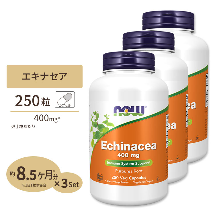 ●エキナセアはかつてネイティブアメリカンの間で利用されていたハーブで、今では世界中に数百万人の愛用者がいると言われています。 ●NOW社のエキナセアは、1粒に高品質・非照射のエキナセアパープレア根を400mg配合しています。エキナセアは寒い季節や季節の変わり目など、マスク姿が多くなるシーズンにプロポリスとともに重宝されるハーブです。 ●こちらの製品は、250粒入ったお得な大容量サイズです。 ●お得な3個セット ※ビーガン仕様 / ベジタリアン仕様 / グルテンフリー / ハラール認証 / コーシャ認証 / Non-GMO (非遺伝子組換え)【NOWのこだわり】 USDA認証オーガニック / Non-GMO (非遺伝子組換え) / グルテンフリー認証 / Intertek GMP (適正製造基準) 認証 / クルエルティフリー (動物実験なし) / インフォームドスポーツ認証 / コーシャ認証 / ハラール認証 / アスパルテームフリー / スクラロースフリー / アセスルファムカリウムフリー / 合成着色料不使用 / パラベンフリー / グルタミン酸ナトリウムフリー / 合成香料不使用 / ILAC MRA認定 / ISO認定 / cGMP (適正製造基準) 認証 | ||||||