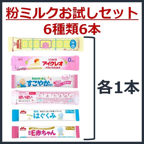 【送料無料●6種類6本】粉ミルク 6大ブランド お試し セット【各1本入】 ほほえみ アイクレオ E赤ちゃん すこやか はいはい はぐくみ サンプル 試供品