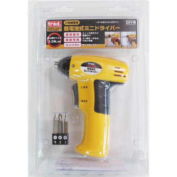 【商品名】 (業務用10個セット) TRAD 乾電池式ミニドライバー 【コードレスタイプ】 軽量 TDB-098O イエロー(黄) 〔DIY用品/大工道具〕 【ジャンル・特徴】 ネジ締め・ゆるめ・穴あけ!コードレスでどこでも使える電動工具 [ TDB‐098O ]