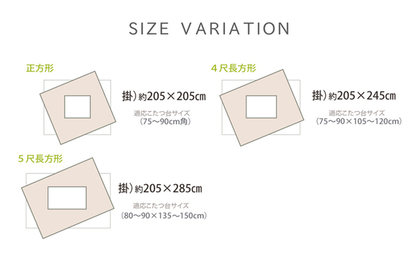 【適応サイズ】75〜90cm角のこたつ台に適応