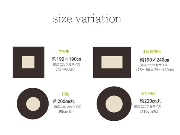 ■約190×190cm グリーン■約190×190cm ローズ■約200cm 丸 グリーン■約200cm 丸 ローズ■約190×240cm グリーン■約190×240cm ローズ■約220cm 丸 グリーン[当ページ]