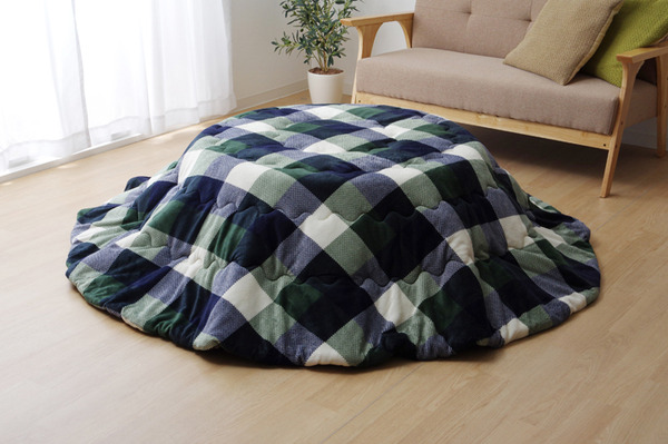 あたたかみのあるカラーと素材を使用したチェック柄のこたつ布団です。表地は肌触りの優しい柔らかなフランネルを使用しています。はっ水加工を施しているため、さっと拭き取っていただけます。薄手なので折りたたんでもかさばらず、コンパクトに収納できます。部分暖房のコタツは電気代もおトクです。
