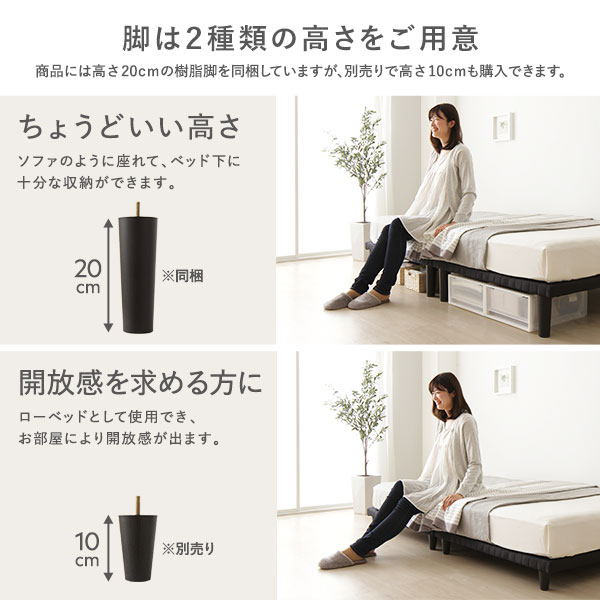 ちょうどいい高さ20cm(同梱):ソファのように座れて、ベッド下に十分な収納ができます。