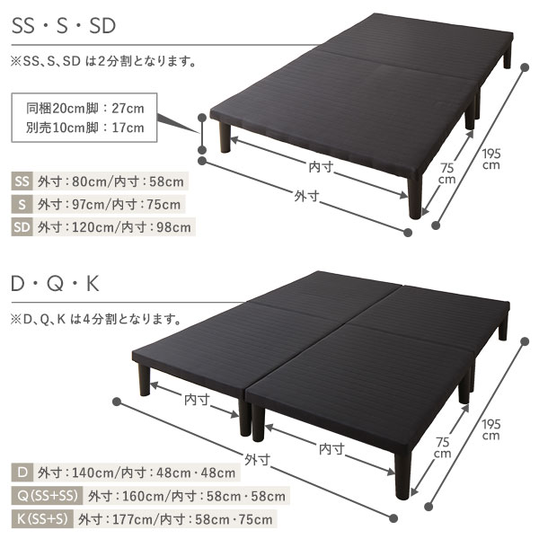 ※マットレスセットのマットレスは分割でなく、すべて一体型です。