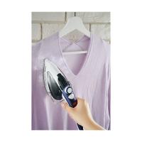 ●アイロンとして使う時はアイロン台の上でしっかりプレス。細く握りやすいハンドルと安定性に優れたヘッドで、スチーム時もアイロン時も、快適に操作できます。