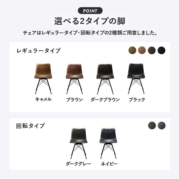 チェアはレギュラータイプ・回転タイプの2種類ご用意しました。