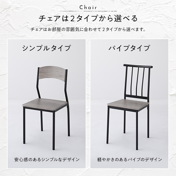 チェアはお部屋の雰囲気に合わせて2タイプから選べます。