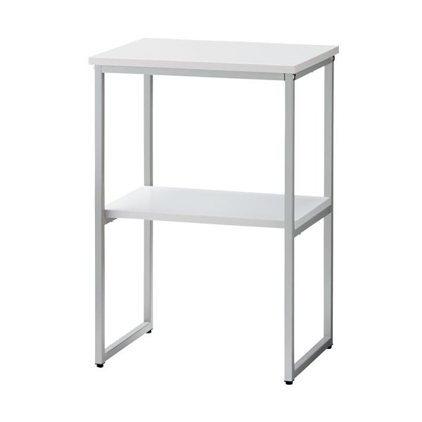 ホワイトカラーのシンプルな電話機台/ワイド500mmタイプ。電話台としての使用はもちろん、他にも使い方いろいろ。省スペースに設置するコンパクトなディスプレイ台としてもお使いいただけます。最下段の棚下有効高さは351mm、棚板有効高さは324mmです。★「組立有料サービス付」は、商品コード707‐064をお選びください。