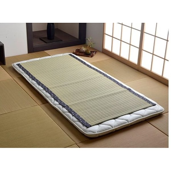 国産(熊本県八代産)のい草を使用したネゴザ(寝ござ)です。国産のイ草は一本一本が太く、表皮が厚く繊維がキメ細かいので、弾力性があり、耐久性に優れています。い草には1.綿の約3倍の吸湿性があり汗のじめじめを軽減します。2.湿度の調整作用があり、蒸れにくく快適な就寝を促します。3.汗のにおいの元となる化学物質を90%以上抑え、においを軽減します。などの効果があります。い草に青森ヒバ加工を施しています。(抗菌・防臭効果)