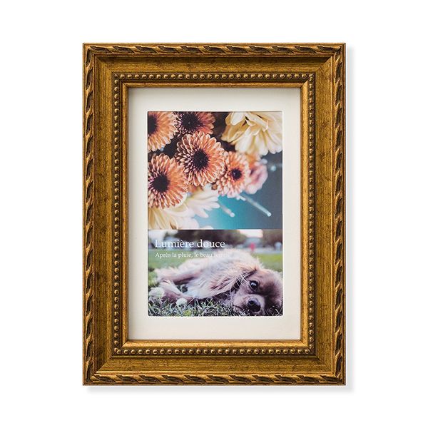 【商品名】 アンティークフォトフレーム REフォトフレーム ハガキ ゴールド 【ジャンル・特徴】 ハガキサイズとL判サイズのどちらも使えるフォトフレーム