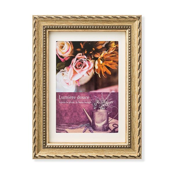 2Lサイズ(127×178mm)とハガキサイズ(106×150mm)かKGサイズ(102×152mm)に使えるアンティーク調のオシャレな模様付きフォトフレーム。