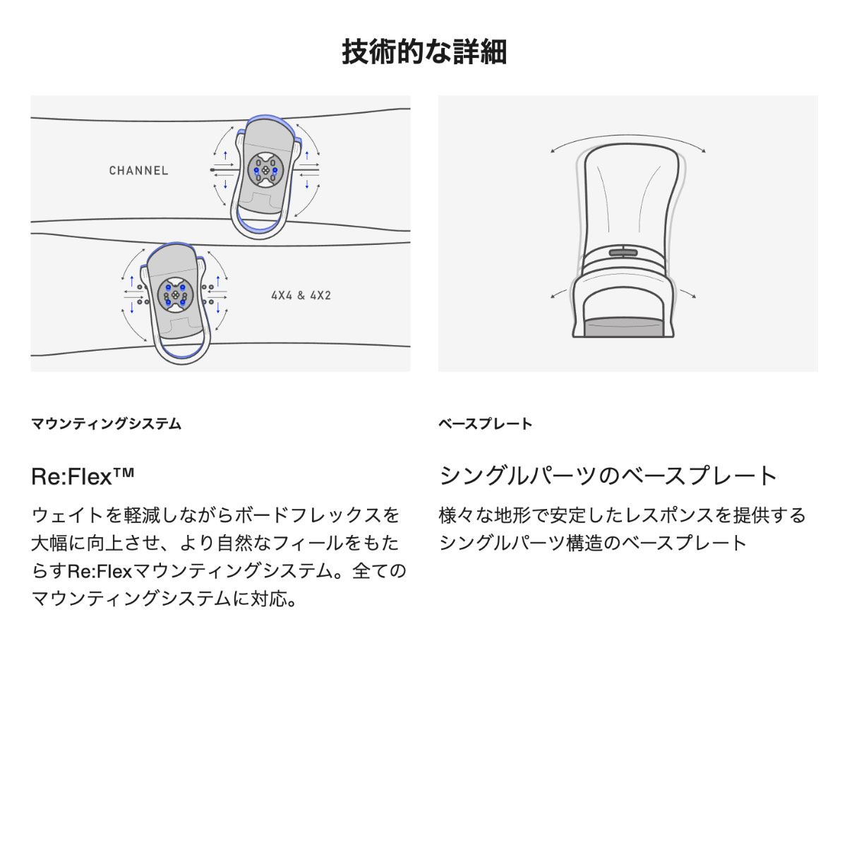 Re:Flex スノーボードバインディング。 快適性と操作性を両立させた、定評あるユニバーサル対応の万能モデル。
