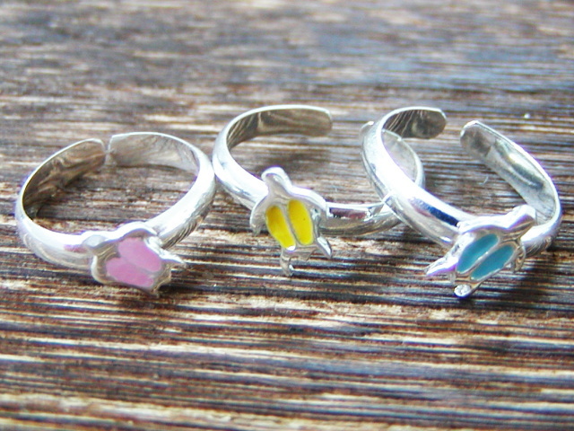 シルバーのトゥーリングにカラフルなハワイの海がめホヌデザイン