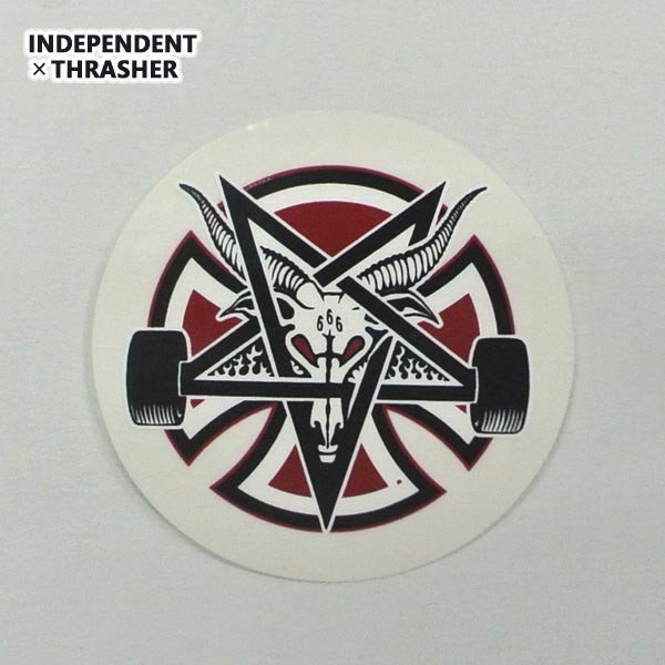 INDEPENDENT/インデペンデント THRASHER/スラッシャー コラボ PENTAGRAM CREAR MYLAR STICKER WHT/RED/BLK 2.75IN ステッカー ビニールシール スケボー クリア