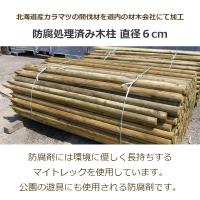 電気柵の角やゲートなどでフェンスの補強に使います。碍子やステイプル、クリップを使ってフェンスの中間杭にも。 ・北海道産カラマツに防腐剤(マイトレック)を圧力注入 ・防腐処理で長持ち ・間伐材を使用しています