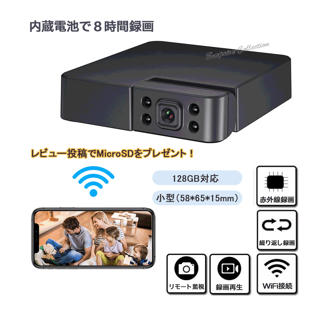 超小型Wifi防犯カメラ 8時間録画 200万画素 AP機能 128GB対応 ワンタッチで録画 不可視赤外線 繰り返し録画