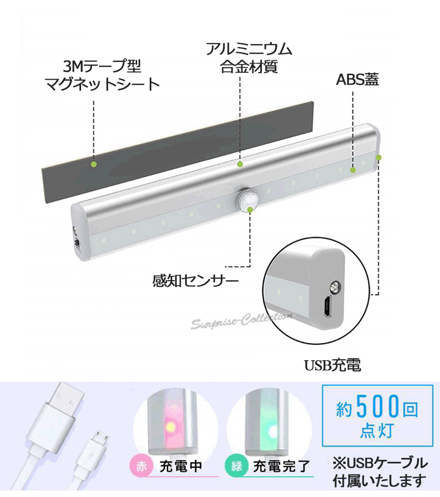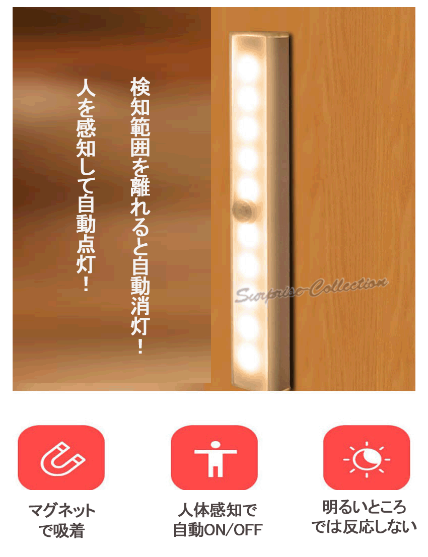 センサーライト 室内 人感 LED 電池 人感センサーライト 屋内 明るい 玄関 磁石