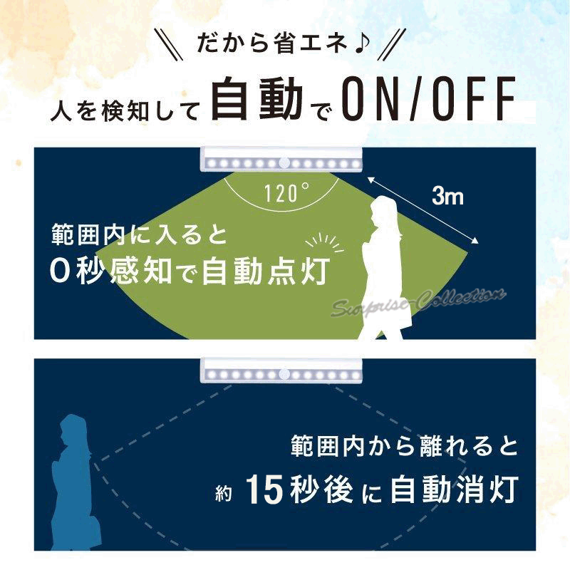 ・人を検知して自動点灯!検知範囲を離れると自動消灯!