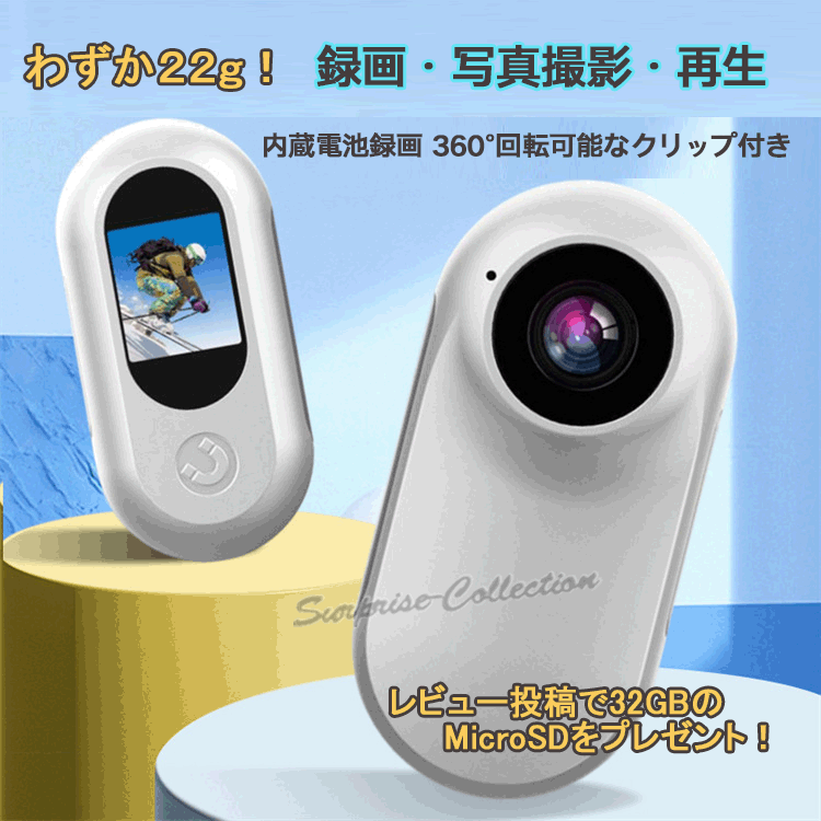 クリップ型防犯カメラ 360度 内蔵電池録画 小型カメラ アクションカメラ ビデオカメラ ドライブレコーダー 1600万画素 1080P マルチスポーツカメラ マグネット