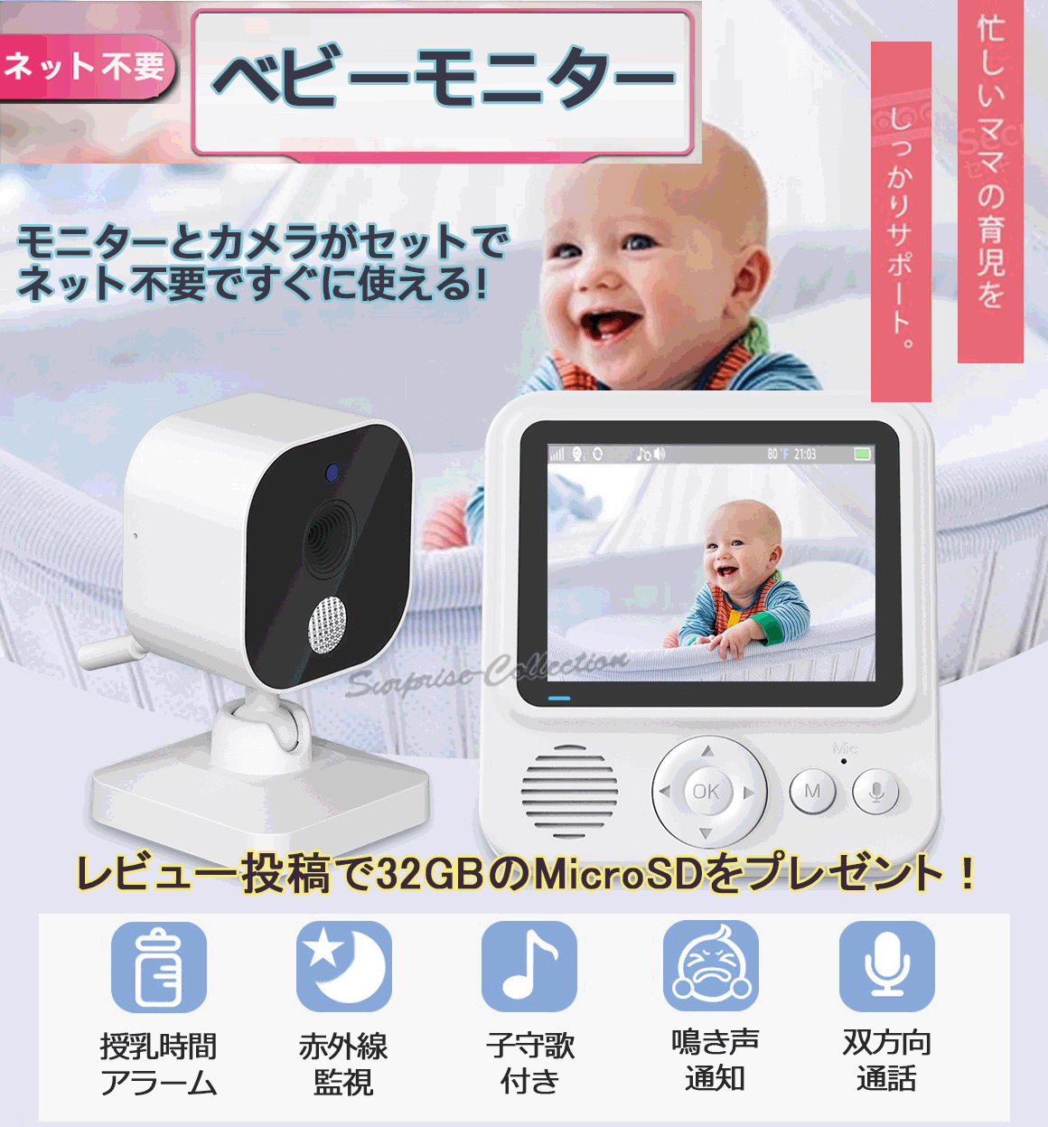 | 重量 | 約100g(モニター)、約70g(カメラ) |