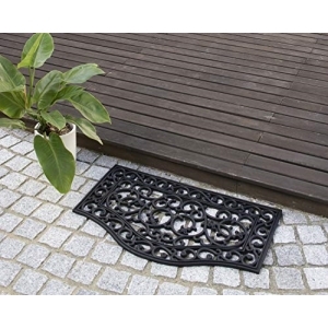 商品紹介 北欧調のダマスク柄と美しいカ−ブが素敵な屋外用玄関マット。 とてもやわらかいラバ−素材なので、タイルなどをキズつけにくく安心してお使いいただけます。 水洗いできるので汚れても安心です。 厚さ約1cm、重量約2.1kgとしっかりしているのでズレにくいと評判です。