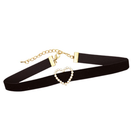 【送料無料】 パールハートのベロア風チョーカー (ブラック) / SUNHOSEKI