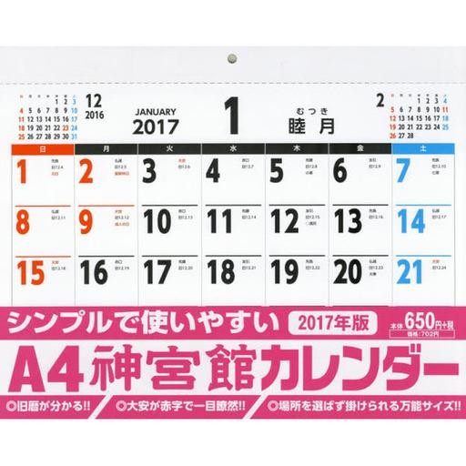 商品名:中古カレンダー A4神宮館カレンダー 2017年度カレンダー