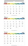 中古カレンダー 3か月2023年壁掛けカレンダー 1月始まり カラーバー