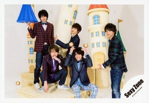 中古生写真(ジャニーズ) Sexy Zone/集合(5人)/横型・全身・衣装黒・青・赤・緑・チェック柄・松島座り・菊池しゃがみ・城のオブジ