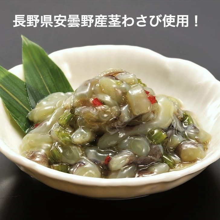 いいだこの甘味をピリ辛のわさびが爽やかに引き立てます。温かいご飯のお供、酒の肴に、お茶漬けに!まさにクセになるお箸が止まらない美味しさです。冷や奴、大根おろしにもよく合います。ご家庭でも様々なお料理レシピでお楽しみ頂けます。