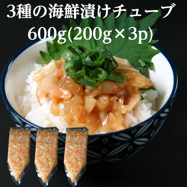 【送料無料】これだけで豪華海鮮丼に!3種類の海鮮漬け600g(200g×3p) 生食用 4〜5人前 サーモン イカ 赤海老 グルメ 寿司 海鮮 お茶漬け ご飯のお供