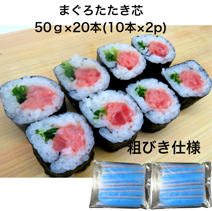 【送料無料】まぐろ たたき 芯 50g×20本(10本×2p) マグロ芯 中巻き 太巻き オリジナル 粗びき仕様 ごろごろ感 贅沢 お酒の肴