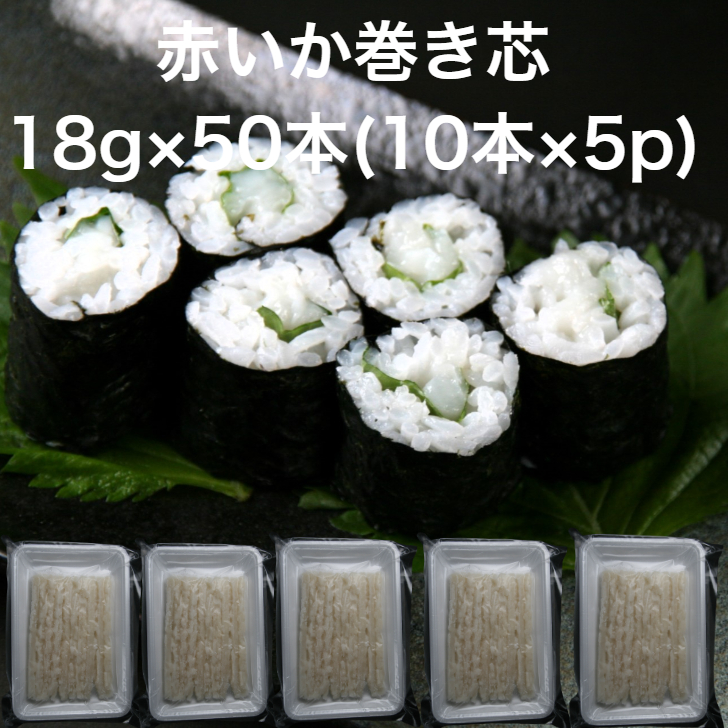 【送料無料】赤イカ巻き芯 18g×50本(10本×5パック) 巻き寿司 まきすし あかいか 寿司ネタ すしねた 細巻 生食用