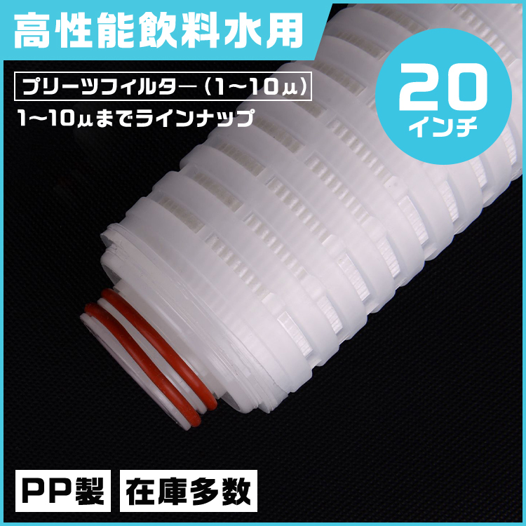 プリーツフィルター 20インチ タイプ222(約508mm)飲料工場や食品工場の水処理ラインの前処理用として最適です。